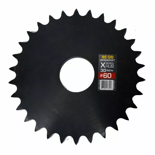 BE CO Sprocket for #60 Roller Chain X Series are weld-on components that are designed for a variety of farm, ranch and industrial applications. They are high quality, precision made sprockets. Available in 15 teeth (4 in. OD), 16 teeth (4-1/4 in. OD), 17 teeth (4-1/2 in. OD), 18 teeth (4-11/16 in. OD), 19 teeth (5 in. OD), 20 teeth (5-1/8 in. OD), 21 teeth (5-1/2 in. OD), 22 teeth (5-11/16 in. OD), 24 teeth (6-1/8 in. OD), 26 teeth (6-5/8 in. OD), 28 teeth (7-1/8 in. OD), 30 teeth (7-5/8 in. OD)