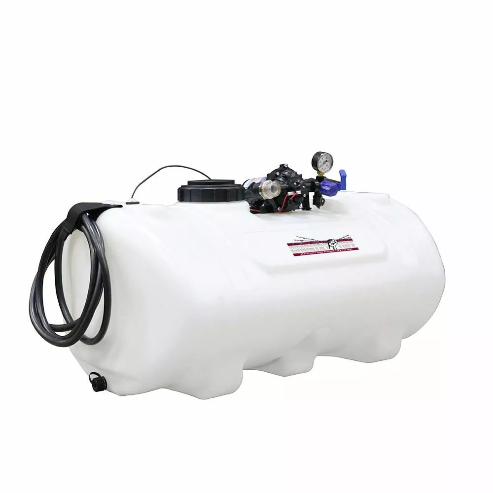Be a sharpshooter with this Country Tuff® 40 Gallon Premium Spot Sprayer. Featuring a robust Everflo 3.0GPM 12V on-demand diaphragm pump. Keep debris and chemical clumps from entering your pump with the easy to maintain quick attach inline strainer. Keep your hose organized with the hook and loop hose strap that prevents any unwanted damage or dragging. Includes 15 feet of hose to spray gun that gives more flexibility for those hard-to-reach areas. After application use, drain remaining water and chemical with the accessible molded in drain port. Comes standard with 12v wire harness that features on/off switch and alligator clamp connection. UV resistant tank. Approved for use with Round-Up® and other agricultural brand herbicides and insecticides. Backed by a two-year warranty on pump & components. Can be used with UTVs and other means of transportation with some modifications.<br><br>Spot Spraying: When it comes time to spot spray, un-holster your deluxe spray gun and reach up to 25 feet vertically and 30 feet horizontally from the comfort of your seat. As applications change, quickly adjust the heavy-duty brass nozzle from a steady stream to a wide mist. Deluxe spray gun is field repairable and features a trigger lock to reduce hand fatigue on longer jobs.<br><br>Broadcast Spraying: This premium spot sprayer is already broadcast spray boom ready with the included adjustable pressure regulator, pressure gauge and boom shut-off valve that controls flow to broadcast spray boom. Universal setup for a wide range of manufactured broadcast spray booms. Broadcast spray boom sold separately. Coverage: This spot sprayer is designed to handle high volume isolated spraying applications. Easily tackle weeds, trees, fence lines, livestock, and similar applications.#html-body [data-pb-style="6216044B4093E"]{justify-content: flex-start; display: flex; flex-direction: column; background-position: left top; background-size: cover; background-repeat: no-repeat; background-attachment: scroll; border-style: none; border-width: 1px; border-radius: 0px; margin: 0px 0px 10px; padding: 10px;}#html-body [data-pb-style="6216044B4095F"]{border-style: none; border-width: 1px; border-radius: 0px; margin: 0px; padding: 0px;}