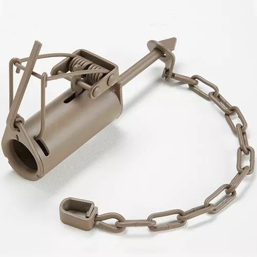 Duke Dog Proof Raccoon Trap is a fully enclosed restraining trap specifically for raccoons. It is powered by compact coil springs and has a sensitive pull trigger system. This trap also has a machine link chain with secure swivel.