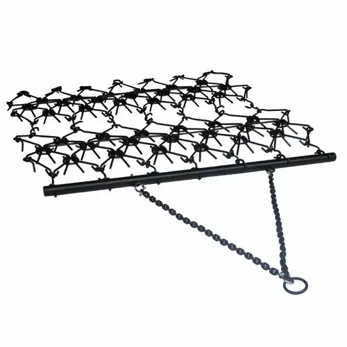 Field Tuff Heavy Duty Drag Harrow 4 Ft. x 4 Ft. is perfect for leveling plots, breaking up soil, leveling pastures and grading. It can be hooked to a tow vehicle with chains or bar and operate at a speed of 8 MPH. The tow bar can be flipped over or moved to the opposite end for less aggressive dragging. The tow chain with its ring will fit over any 2 in. trailer ball. Works with ATVs, UTVs and lawn tractors.