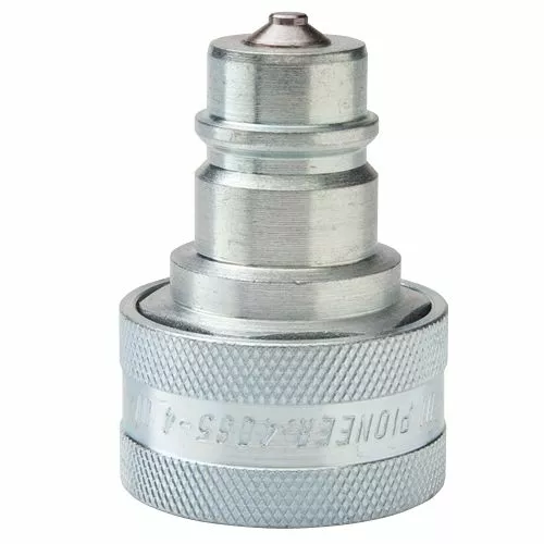 Pioneer John Deere (Old Style) to Pioneer Adapter converts John Deere (Old Style) male tips to a Pioneer ISO male tip. It has an induction hardened body to prevent Brinelling and prolong service life. The shielded valve eliminates flow checking. This adaptor allows implements with old style John Deere tips to connect Pioneer couplings.