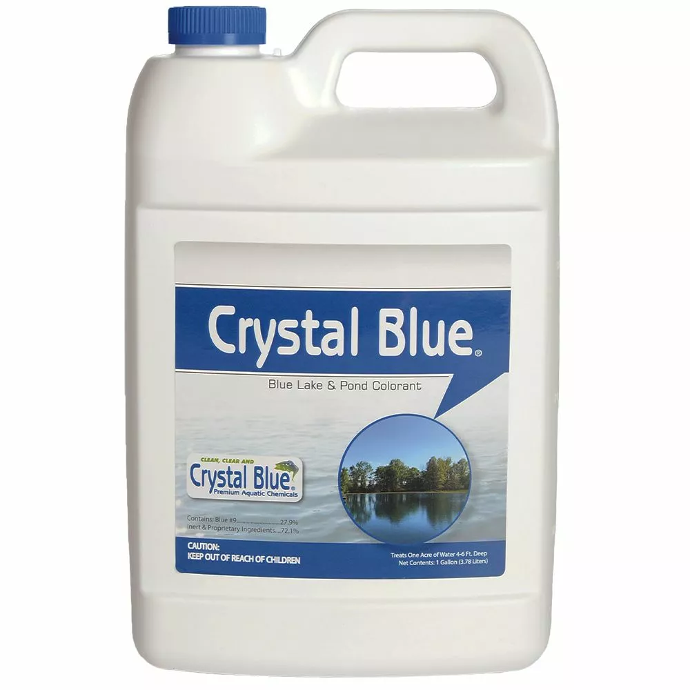 Crystal Blue® Lake and Pond Colorant enhances the color of your lake or pond all year long. Completely safe to livestock and fish, no irrigation or consumption restrictions. Beautiful deep blue color. 1 Gallon treats 1 acre 4-6 ft. deep.
