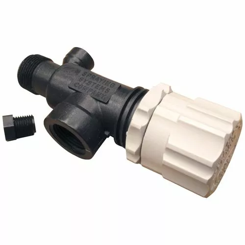 TeeJet Manual Pressure Relief Valve 3/4 In. has a polypropylene body and stainless steel spring that provides excellent chemical resistance. You can manually adjust spraying pressure up to 150 PSI.