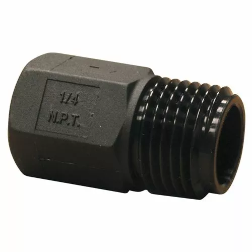 TeeJet Nylon Nozzle Bodies have a straight 1/4 in. female inlet to 11/16 in. male nozzle thread outlet, nozzle body.